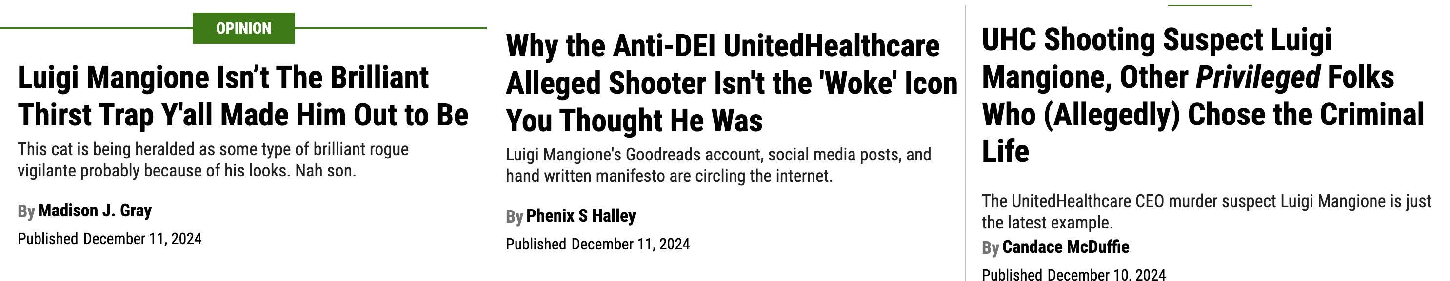 In the end, I doubt little will change in America as a result of Luigi’s actions (except a few executive security companies making more money, I guess). Yes, the events he set in motion very clearly revealed that an overwhelming number of Americans are fed up with the ghouls who lord over our healthcare and siphon off billions for their mansions and yachts and supercars (and the electoral options for changing this system). But America has always been a country where the overwhelming views of the citizens are fairly unimportant if they happen to run counter to the interests of the wealthy. We fight wars the people don’t want to fight. We fund programs people find reprehensible. We build healthcare systems that enrich a few people at the expense of countless innocent lives. The will of the people has never been particularly relevant when it comes to the machinations of the powerful. We are on a fixed path, and the scolds know it just as much as I do. They aren’t trying to change how you feel about Brian Thompson or Luigi Mangione or United Healthcare or jokes or tone or anything at all, really. They just want the masters of the universe to notice them, and smile down upon them.